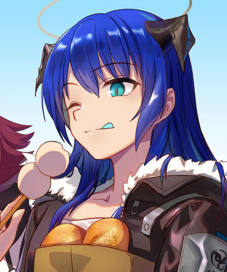 She is a proud member of Texas's harem (no matter if Texas admits it as such or not) and constantly finds comfort in her often silent embrace. What had started as a mere one night stand to sate their physical desires without bringing up the baggage involved in their respective past lovers of Exu and Lappland, grew into its own genuine relationship over time. Now she can't spend a night outside of the lupo's bed, even if all they end up doing is holding each other throughout the evening.